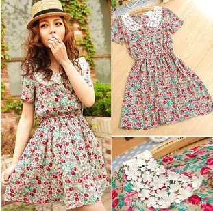 产品名称:日单精品人棉刺绣花朵领花鲜美收腰碎花连衣